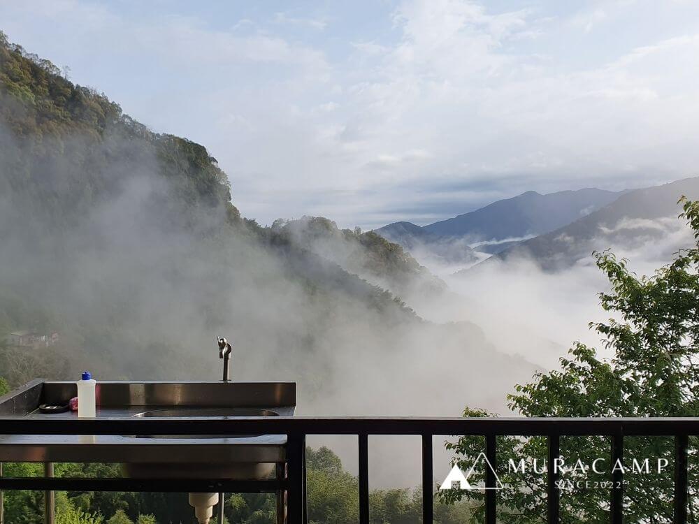 這次訂的杜鵑區,每帳之間間隔大,住起來很寬敞舒適,望出去直接是一片山嵐,而且每帳都配有獨立的洗水槽,可以一邊洗菜一邊欣賞著美景,真心覺得是一個很棒的雨棚營位!