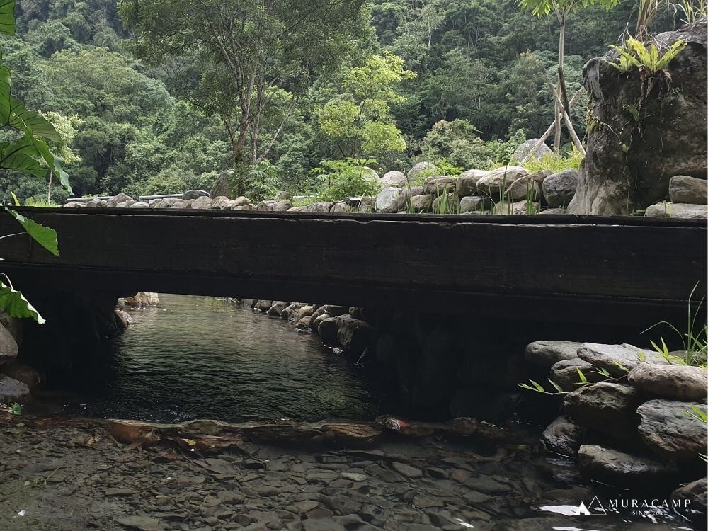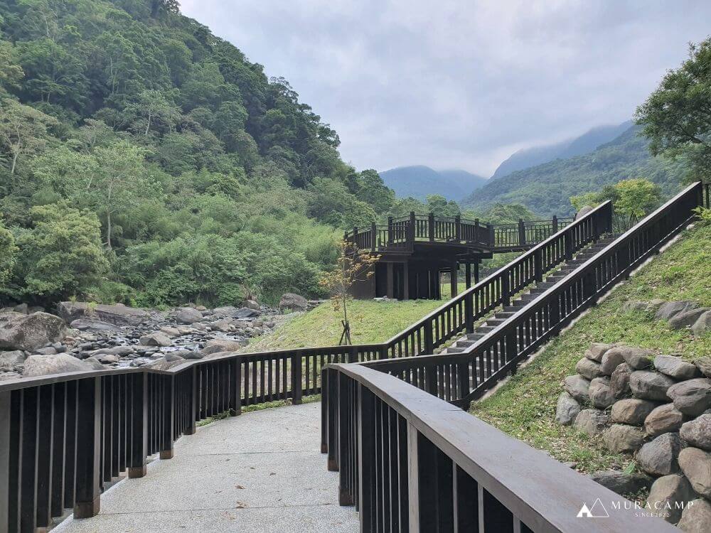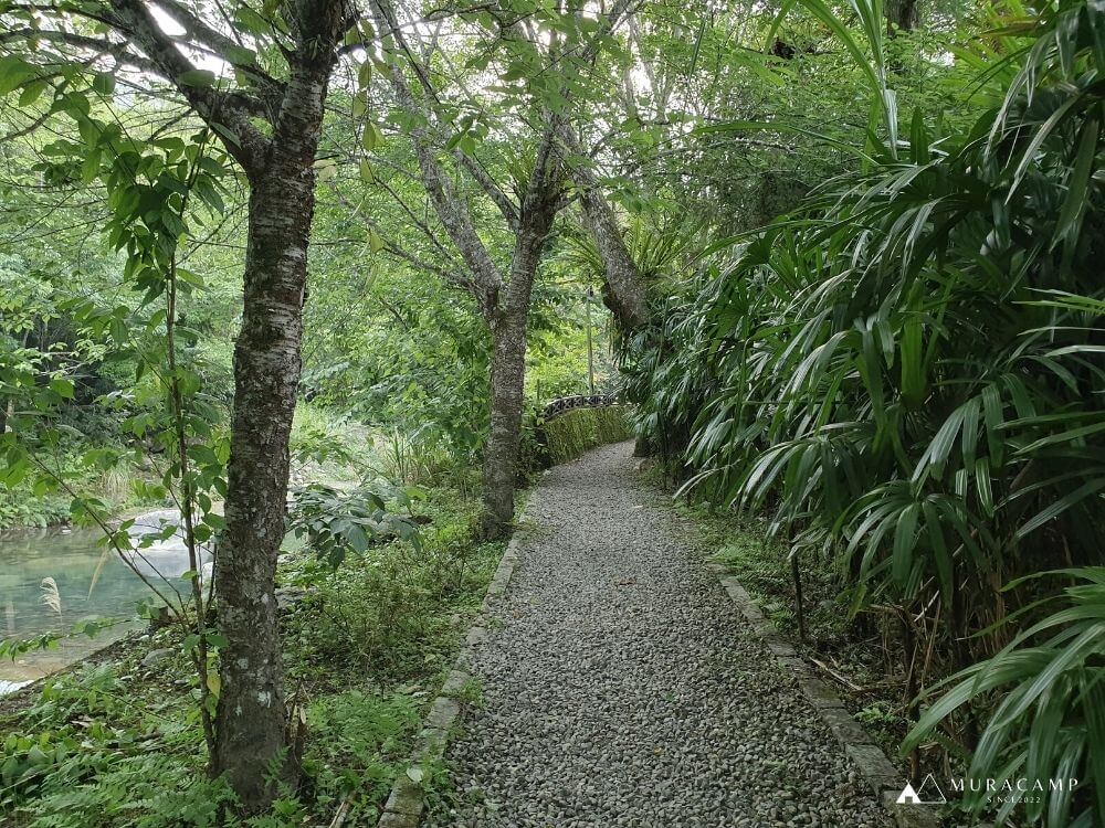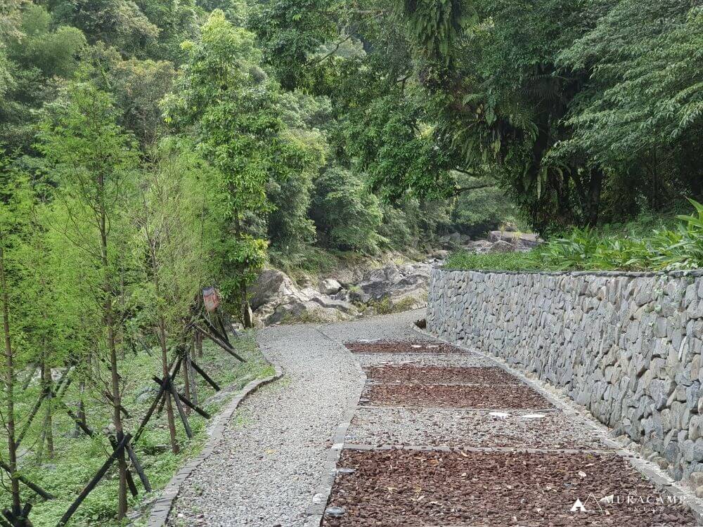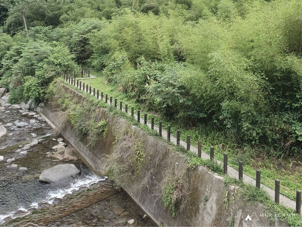 步行幾分鐘後,會看到一小段石階樓梯,登上階梯,便會看到一片平坦的碎石路。步道旁有一條水圳,它是日治時期開鑿的,早期用來讓泰雅族人種植水稻,如今已不見水田的蹤影,但保留下的這條古圳道,也讓生態更豐富多樣。