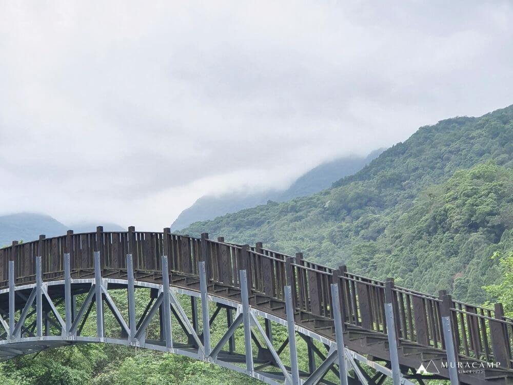 福山景觀橋,跨越大羅蘭溪,連接兩側的古圳步道與溪瀧步道,形成一個環形步道。站在橋上,聽著潺潺溪水,感受大羅蘭溪的自然生態,放鬆又舒壓。