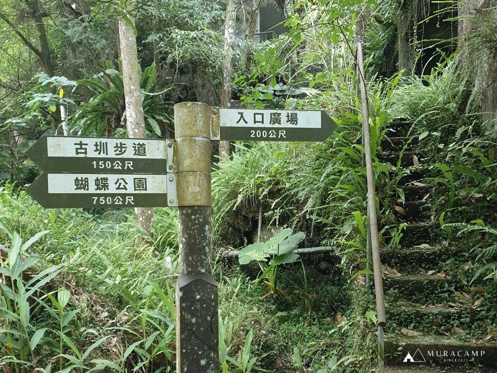 進入古圳步道後,大約步行950km左右,便會抵達蝴蝶公園。蝴蝶公園,是夏天(6-8月)賞蝶最佳的地點,青斑鳳蝶、台灣鳳蝶、白粉蝶,在這裡翩翩飛舞。