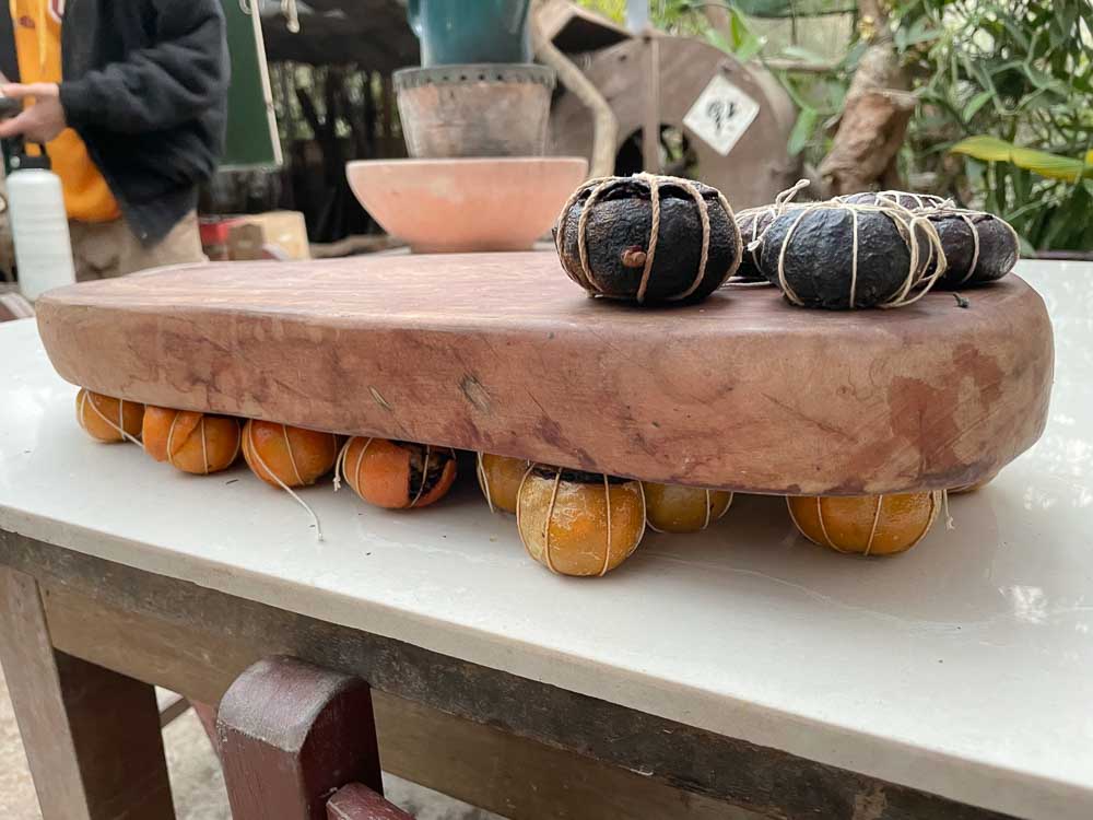 這個步驟,必須一邊塞、一邊壓緊,讓柑橘變扎實,減少內部的空氣,防止黴菌滋長,「緊壓茶」就是這樣來的!