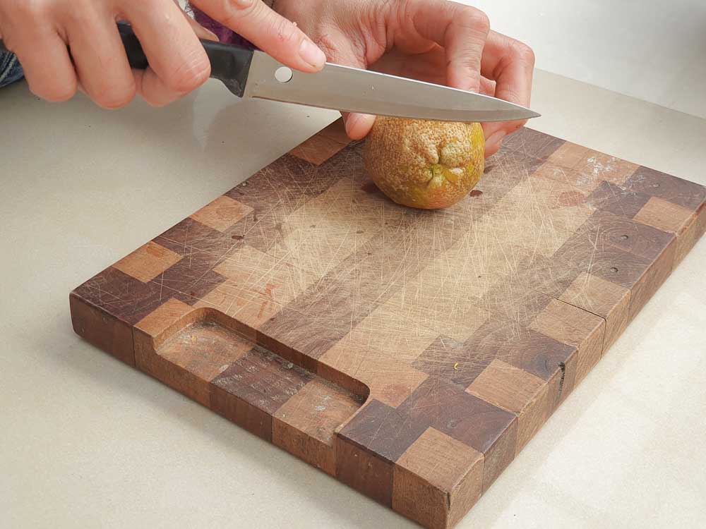 ▲ 將柑橘從約1/4處切開,變成一個蓋子+容器